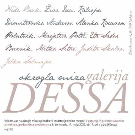As part of the exhibition To the fore 5: The pioneers of Slovenian architecture, construction and design, we kindly invite you to a round table, which will be held on Wednesday, 11 May 2022, at 5 pm in the DESSA Gallery.